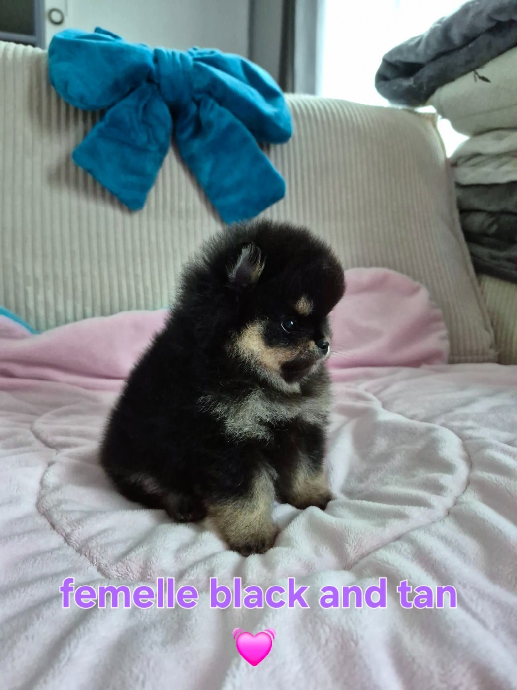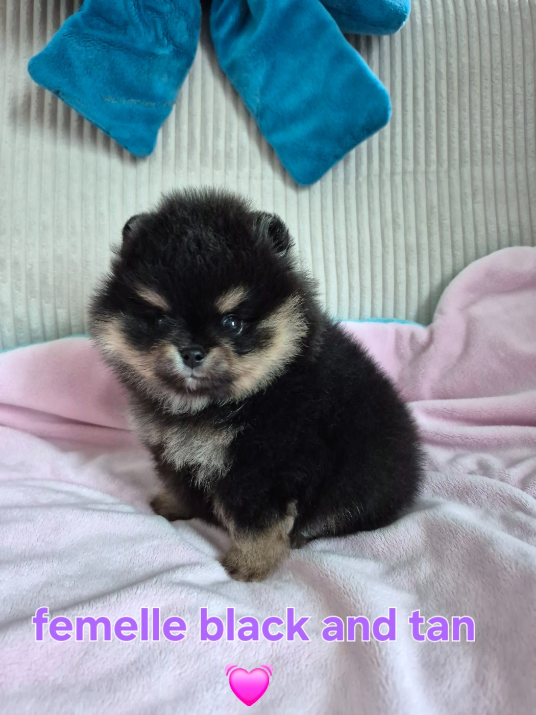 Magnifique femelle black and tan avec un type incroyable une magnifique spitz naine pomeranienne Lof typé ourson comme ses parents.