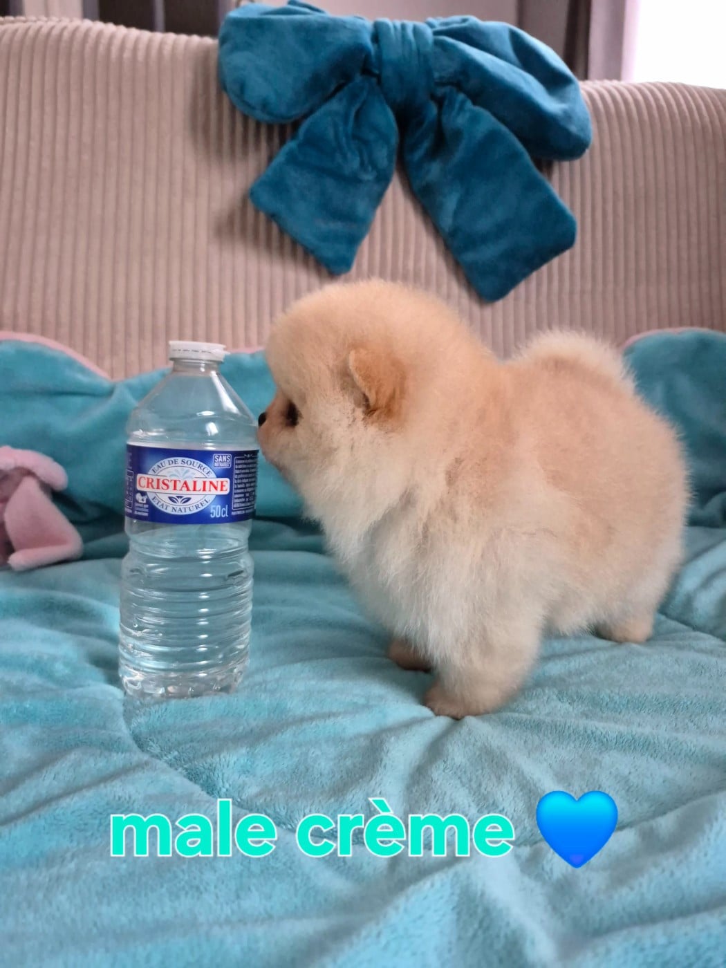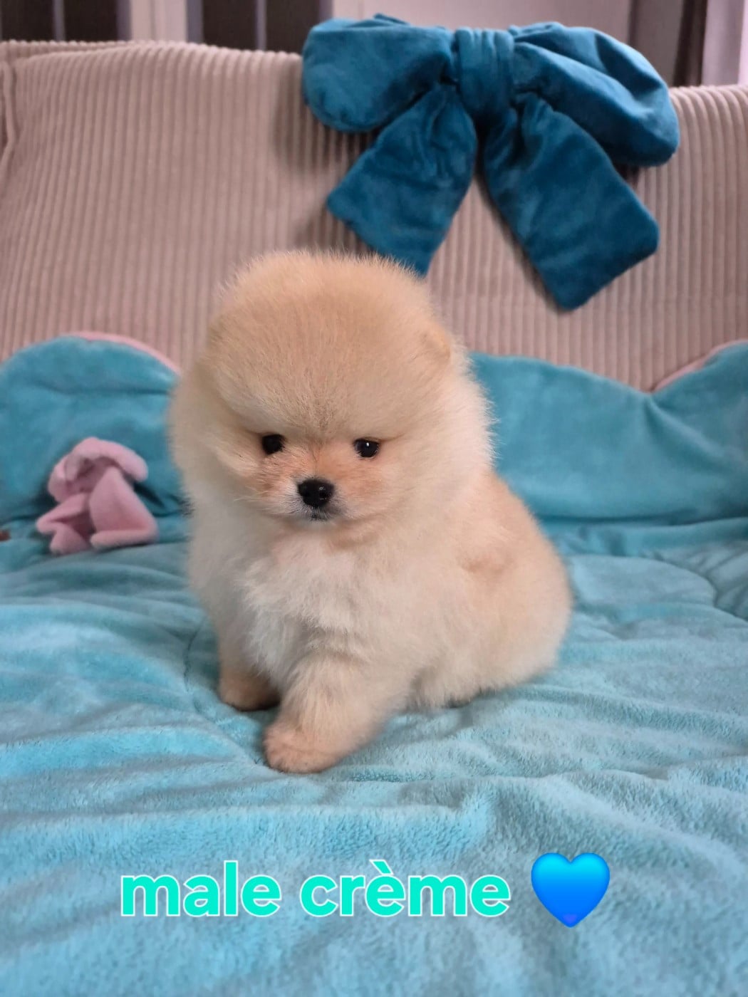 Magnifique mâle spitz nain pomeranien LOF crème très bien typé ourson comme ses parents a déjà une fourrure incroyable pour son âge